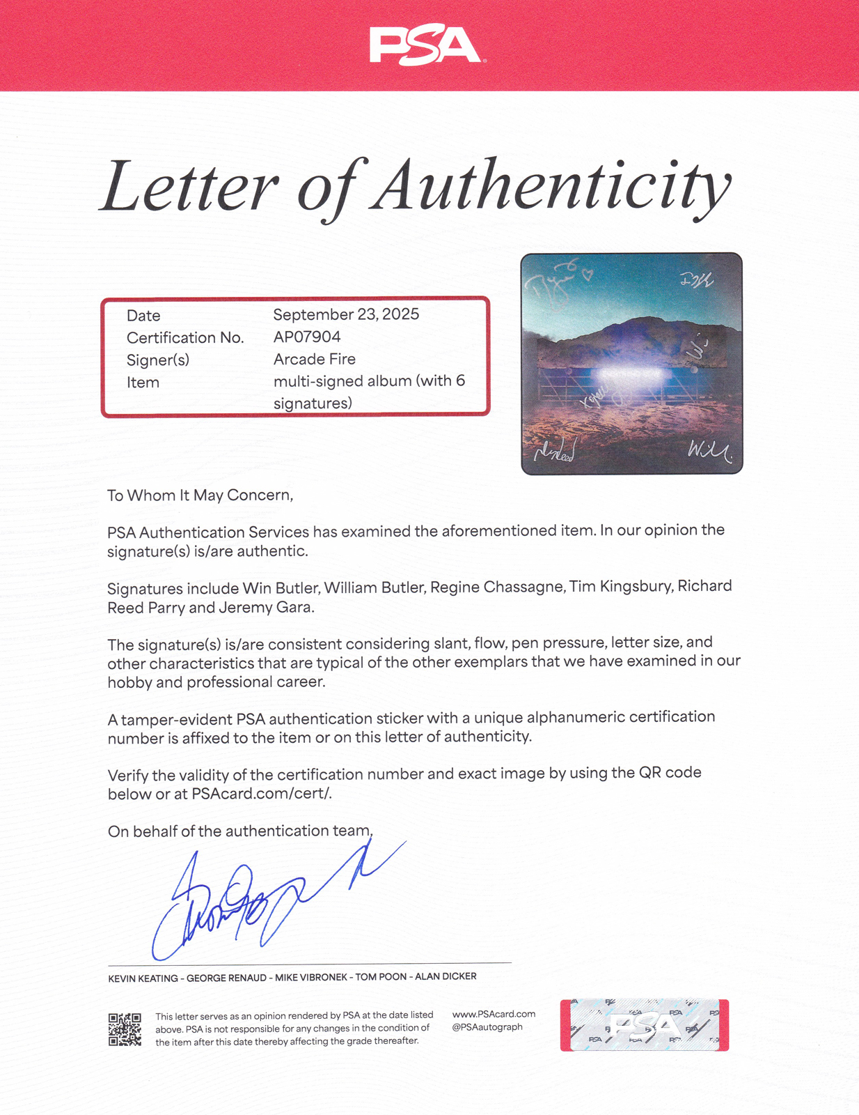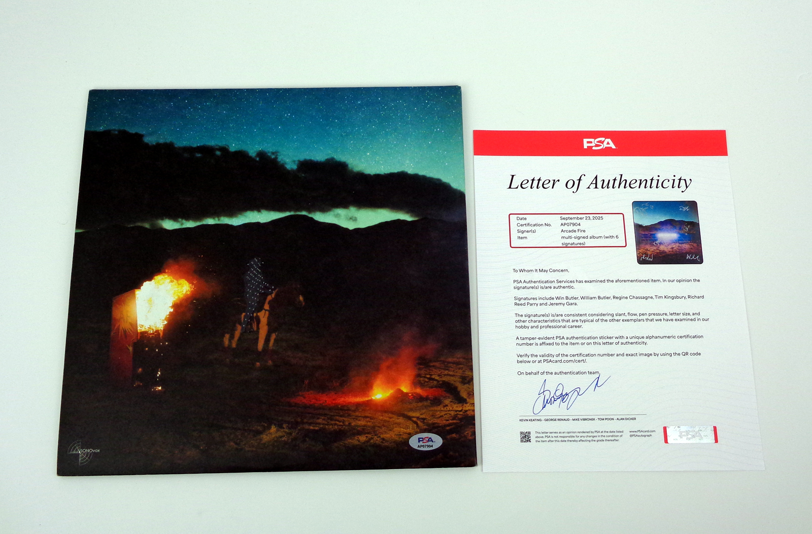 • Entire Core Band Signed Album. Signatures Include: Win Butler, Régine Chassagne, Richard Reed Parry, Tim Kingsbury, Will Butler and Jeremy Gara.