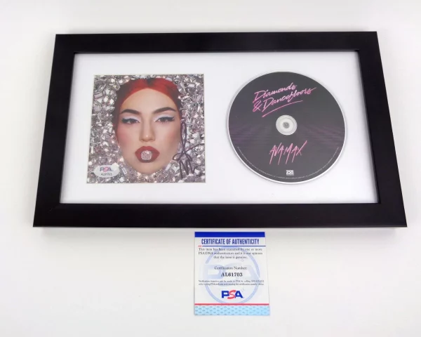 Ava Max is one of the most commercially successful and celebrated pop artists of her generation; known for her powerful vocals and global hits including Sweet But Psycho. Diamonds & Dancefloors; released in 2023; was a major commercial success. A framed CD signed by Max and authenticated by PSA/DNA is a meaningful piece of contemporary pop memorabilia.