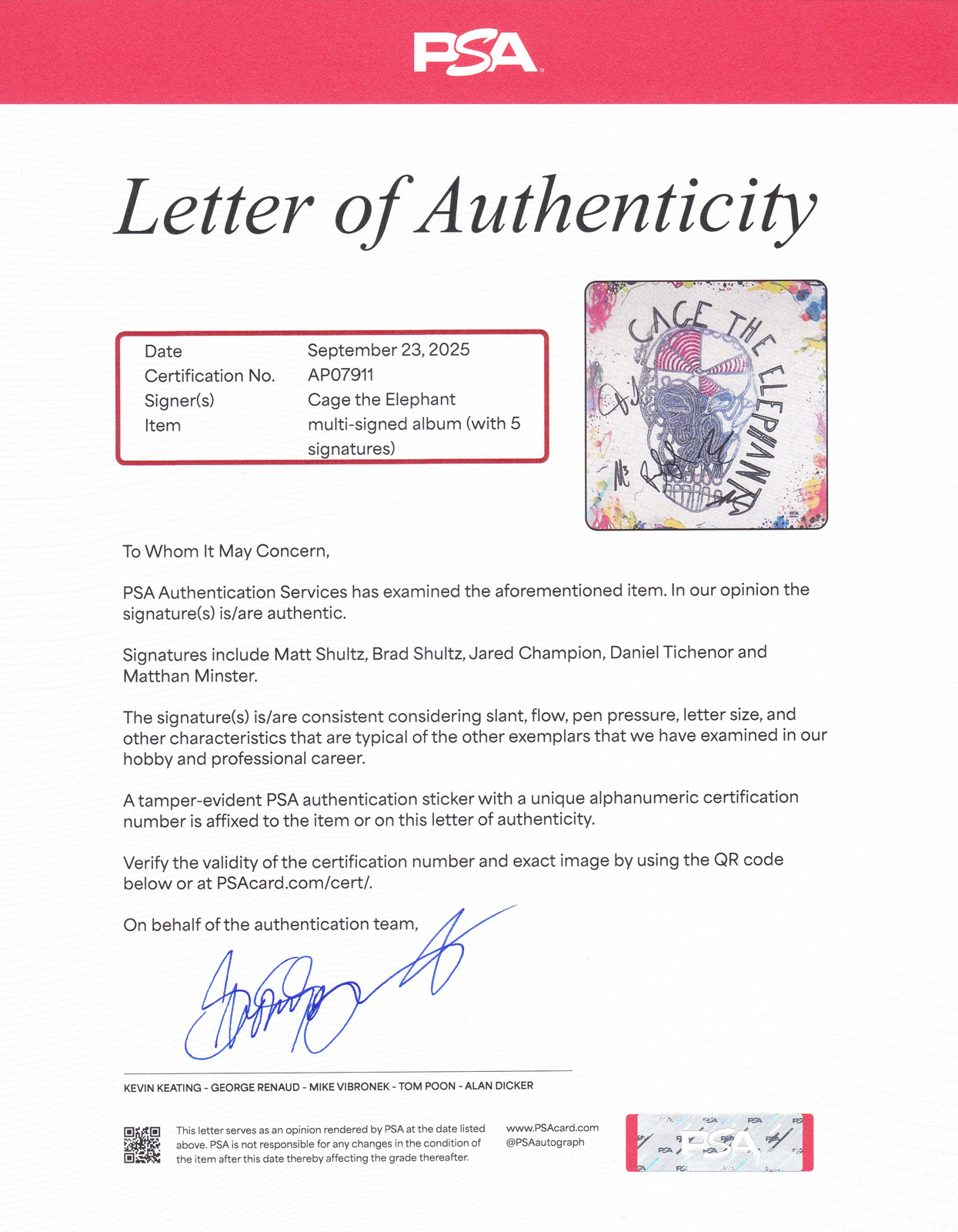 • This Vinyl Record Album, Cage The Elephant, has been hand signed/autographed by The Legendary Band, Cage The Elephant.
