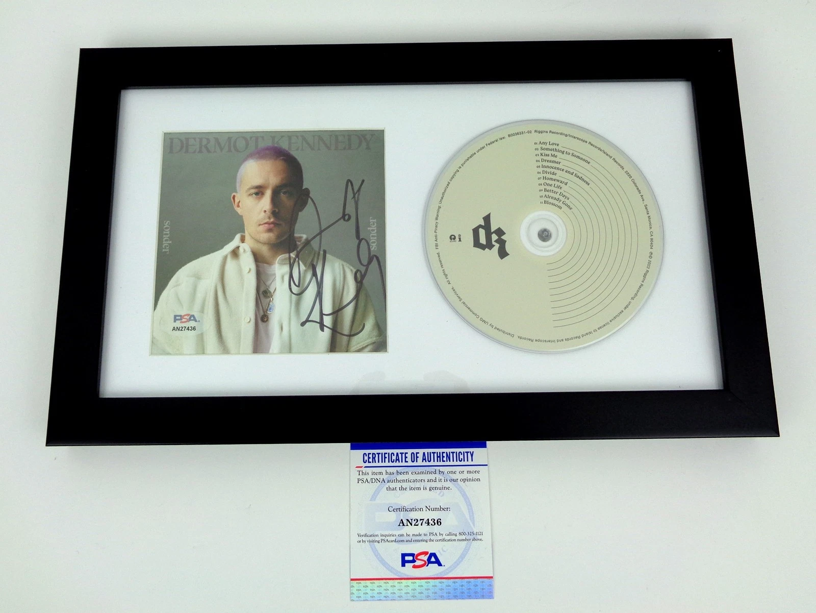 - Hand signed and autographed by Dermot Kennedy on a framed Sonder CD