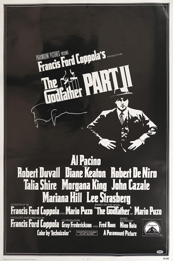 - Hand signed and autographed by Francis Ford Coppola on a full size The Godfather Part II movie poster