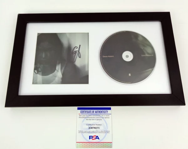 With PSA/DNA authentication providing permanent verifiable proof of authenticity; this framed Gracie Abrams-signed Good Riddance CD cover is a striking display piece that combines album artwork with a verified signature; making it an ideal addition to any music memorabilia collection; learn more about our authentication standard at nicksportsautographs.com/authentication.