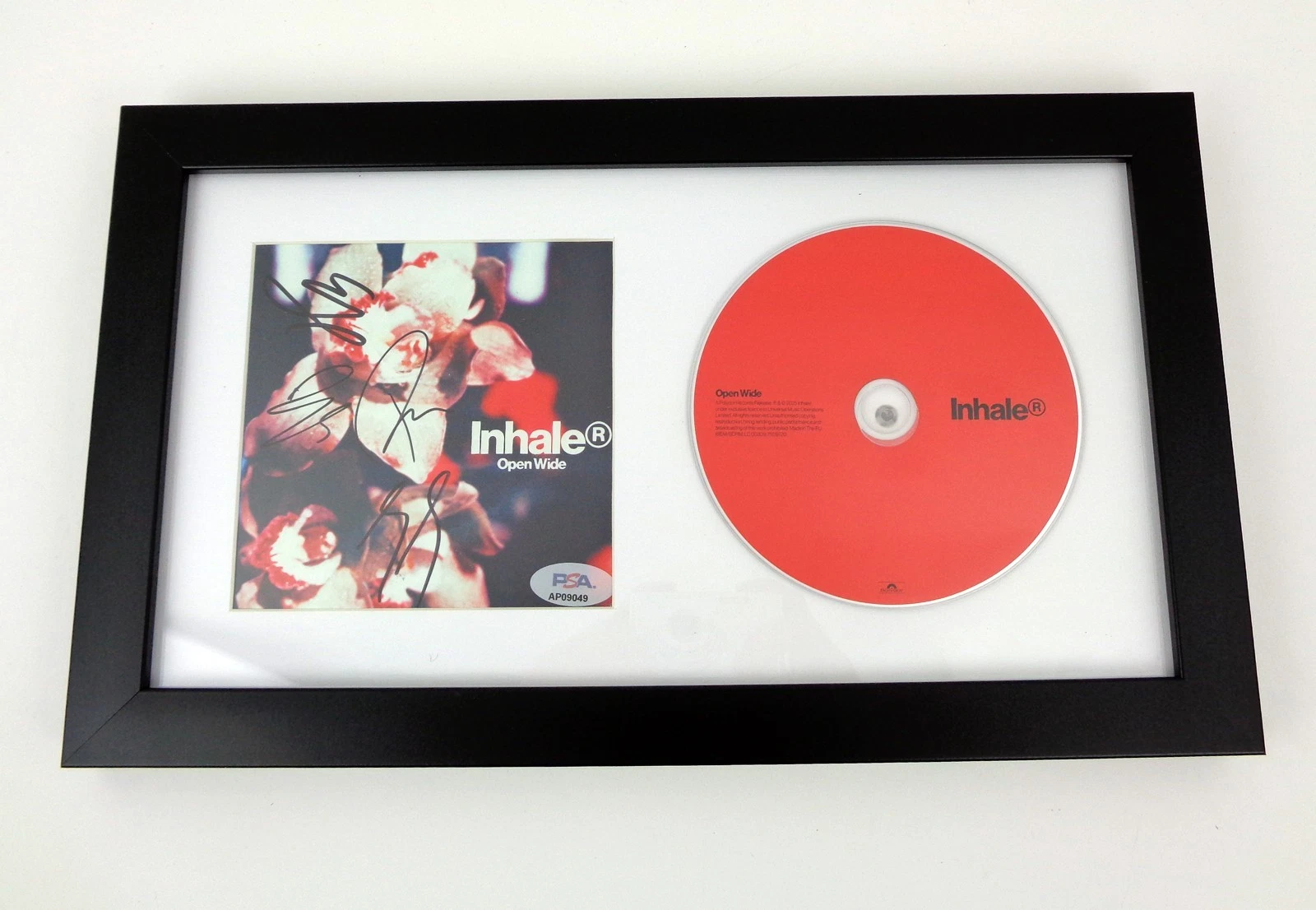 A framed signed CD authenticated by PSA/DNA is a display-ready piece of music memorabilia that showcases both the album artwork and the artist’s signature; and a full-band Inhaler autograph on Open Wide captures a group whose best years are still ahead of them; learn more about our authentication standard at nicksportsautographs.com/authentication.