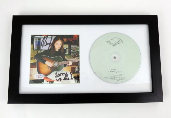 A framed signed CD authenticated by PSA/DNA is a display-ready piece of music memorabilia that showcases both the album artwork and the artist’s signature; a natural focal point for any collection or music room.