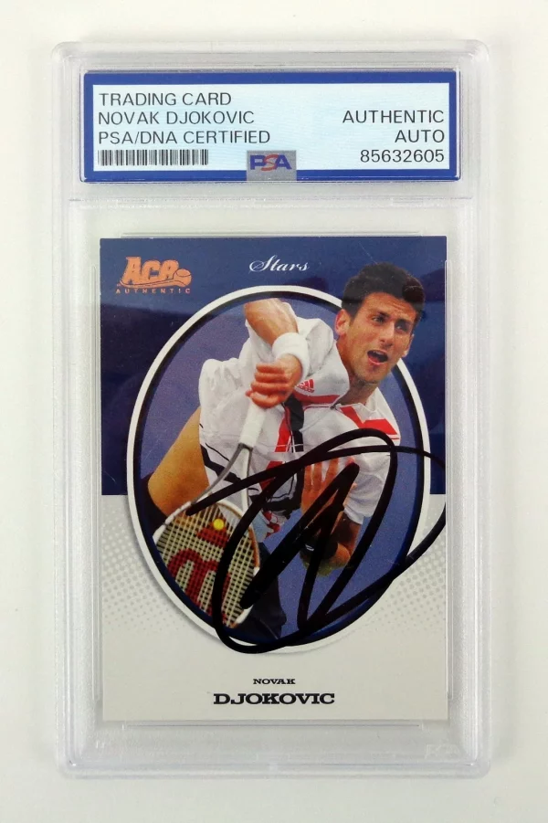 Novak Djokovic is widely regarded as one of the greatest tennis players in the history of the sport; a record-breaking Grand Slam champion whose dominance across all four major tournaments has placed him at the very pinnacle of the game for well over a decade. The 2008 Ace Stars card represents an early chapter in what would become one of the most decorated careers in sports history; a vintage issue that captures Djokovic in his formative years as a rising force on the ATP Tour before his era of unprecedented Grand Slam dominance. Hand signed and encapsulated by PSA/DNA; this slabbed card is a premium and permanently authenticated piece of tennis memorabilia.
