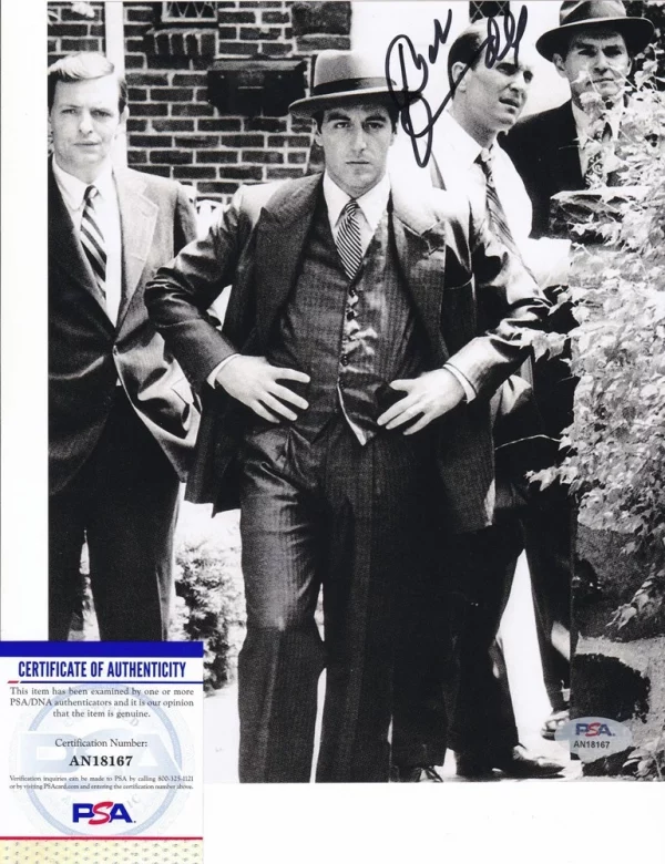 Robert Duvall’s portrayal of Tom Hagen in The Godfather stands as one of the most iconic supporting performances in film history. As the Corleone family’s adopted son and trusted consigliere; Duvall brought a quiet intelligence and unwavering loyalty to the role that provided the perfect counterbalance to the explosive power struggles around him. This hand signed 8×10 photo features an image from that landmark film; carrying the autograph of an actor whose contribution helped make The Godfather the greatest movie ever made in the eyes of many. Duvall passed away in January 2025; ensuring that authenticated signatures tied to this legendary role will never grow in number.